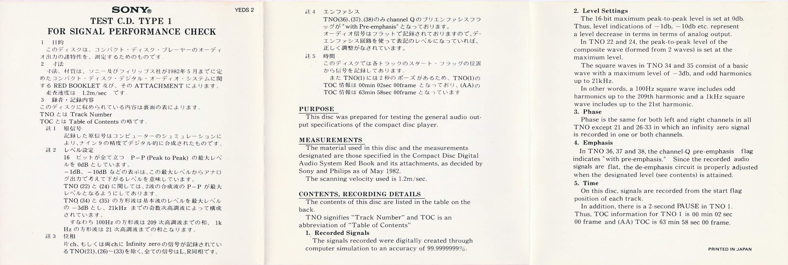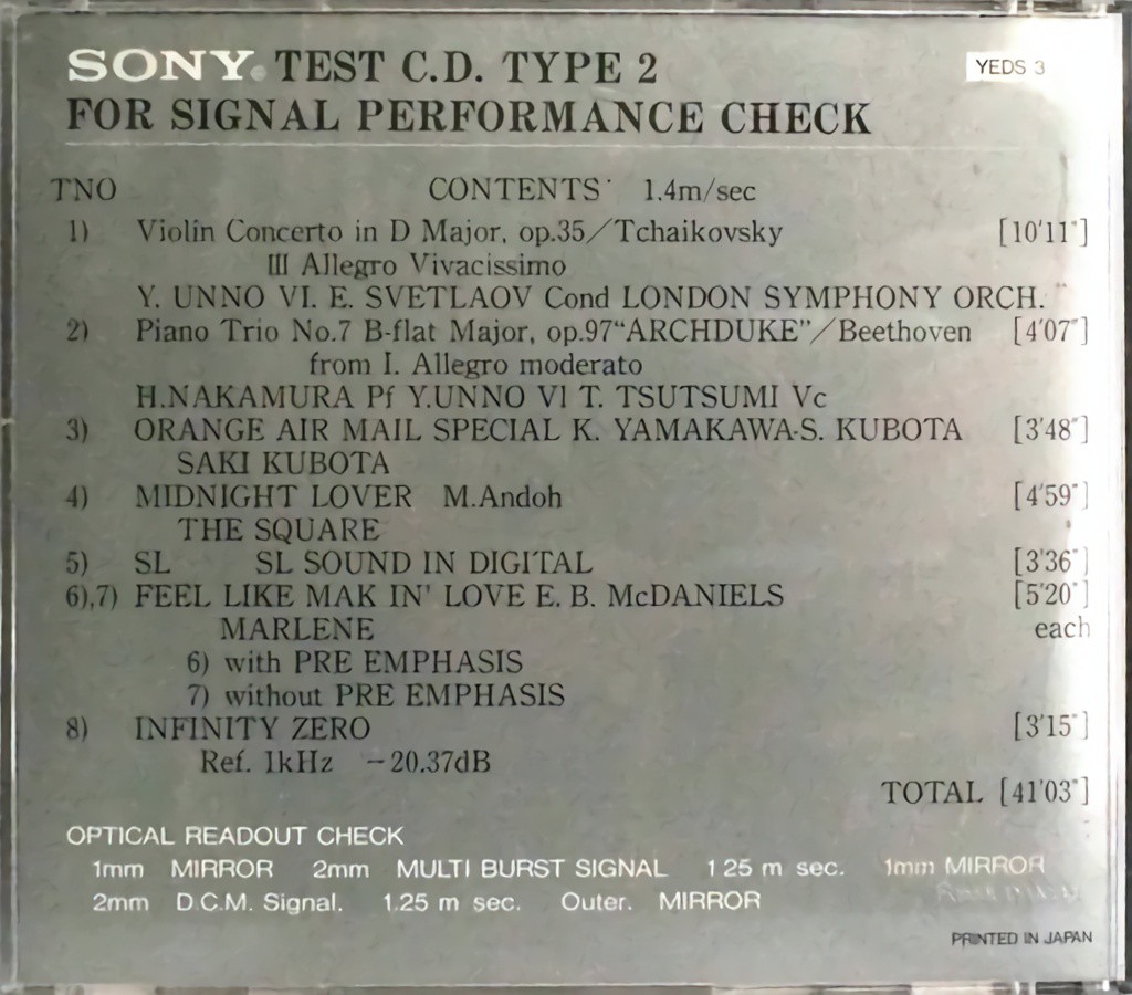 Test C.D. Type 1 - for Signal Performance Check [YEDS-2 • JP • 1982 • Demo] |