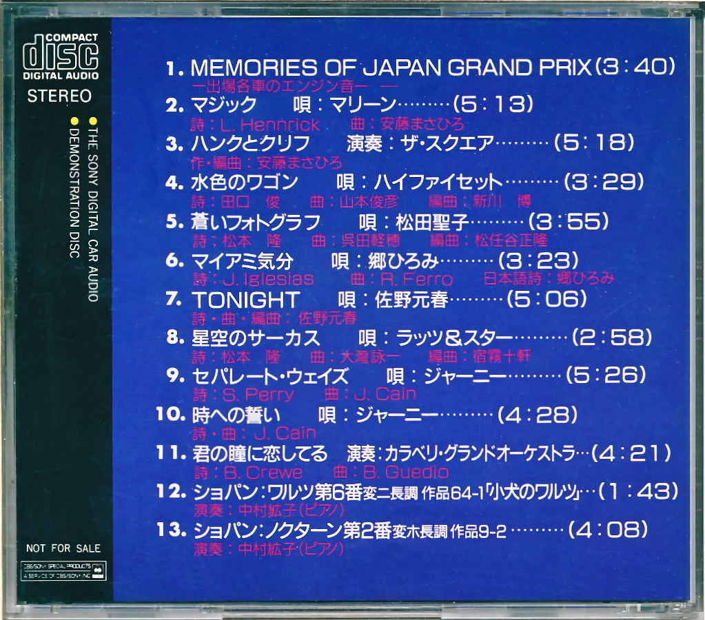 The Sony Digital Car Audio - Demonstration Disc [YEDS-10 • JP • 1984 • Demo] |