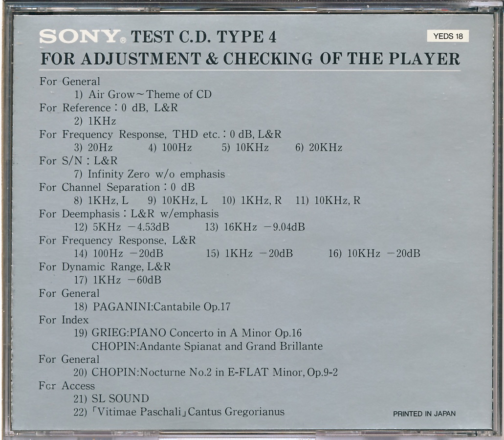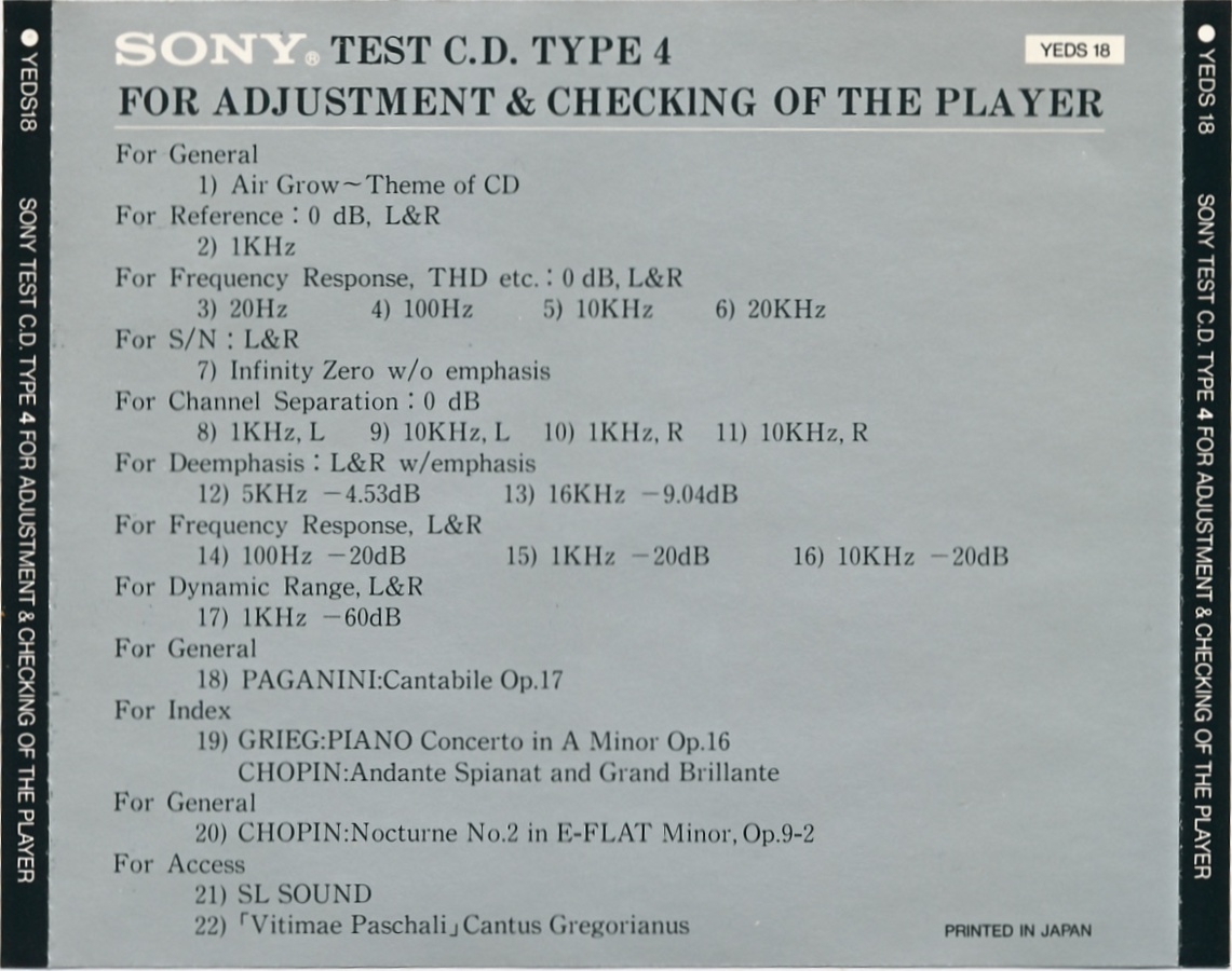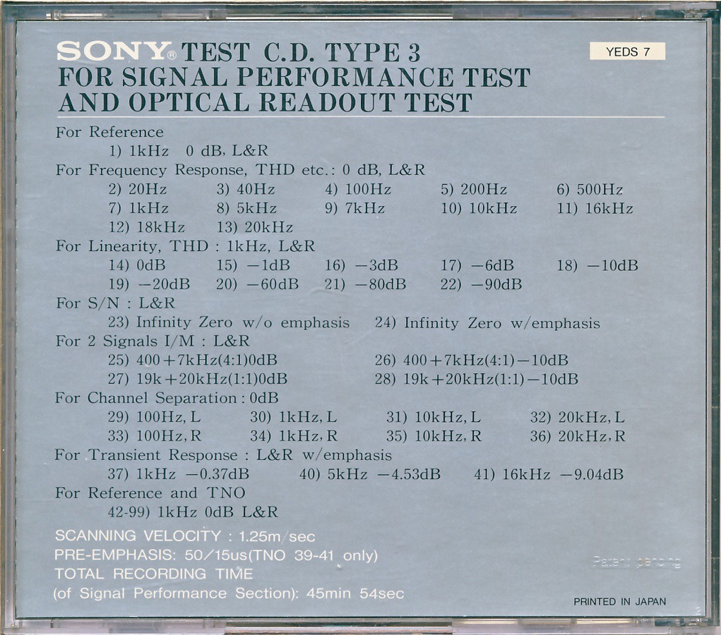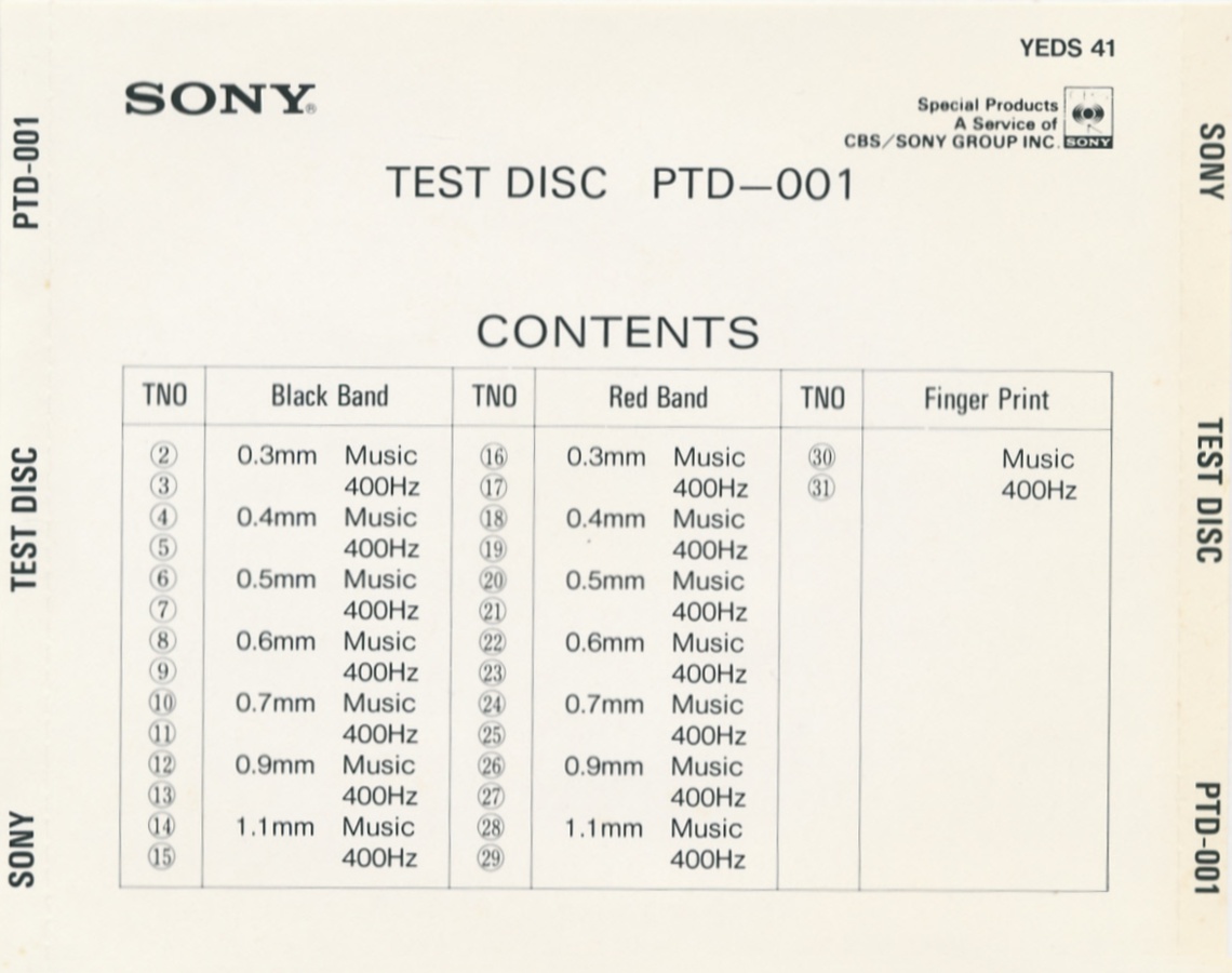 Sony Test Disc · YEDS-41 · Japan · © 1988 Sony Corporation / CBS-Sony Group Inc. Sony Test Disc · YEDS-41 · Japan · © 1988 Sony Corporation / CBS-Sony Group Inc. Sony Test Disc · YEDS-41 · Japan · © 1988 Sony Corporation / CBS-Sony Group Inc. Sony Test Disc · YEDS-41 · Japan · © 1988 Sony Corporation / CBS-Sony Group Inc. Sony Test Disc · YEDS-41 · Japan · © 1988 Sony Corporation / CBS-Sony Group Inc. Sony Test Disc · YEDS-41 · Japan · © 1988 Sony Corporation / CBS-Sony Group Inc. |
