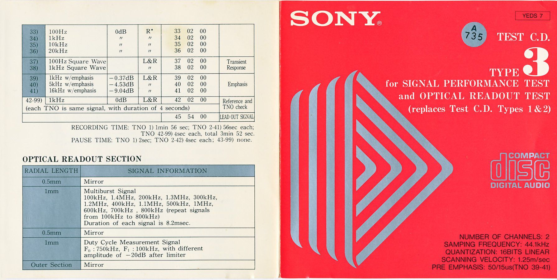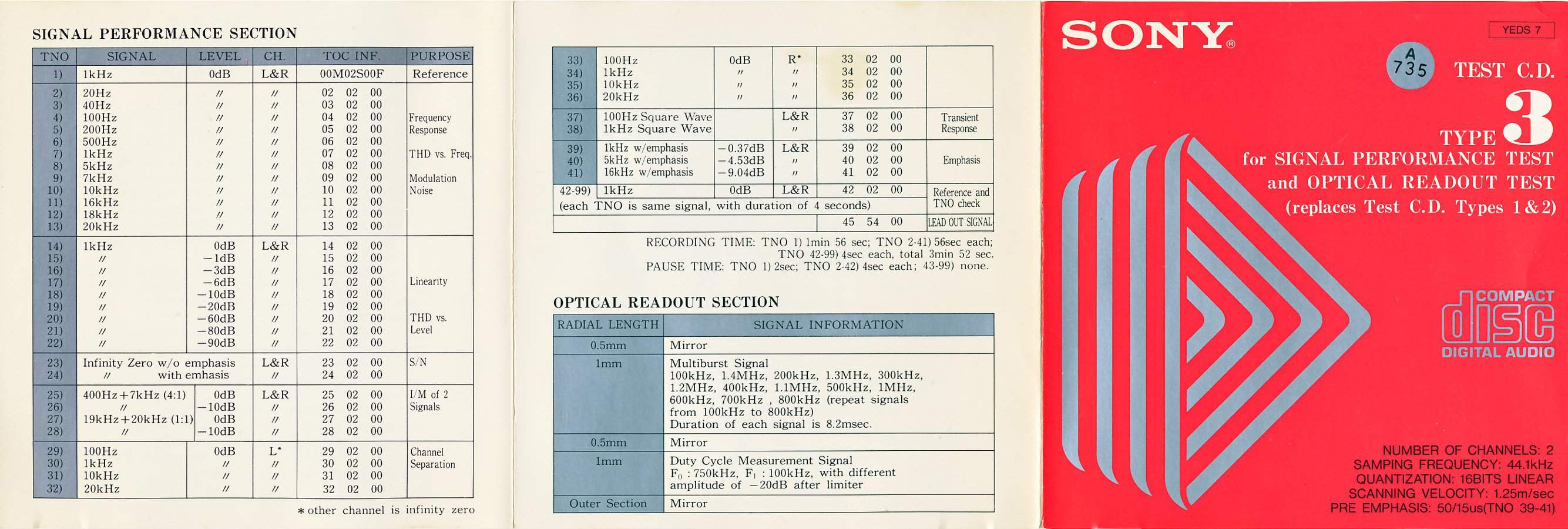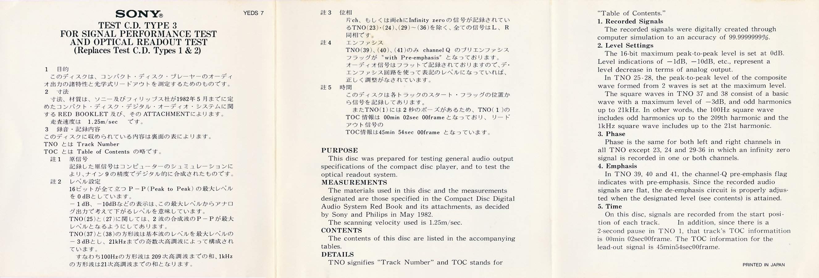 Test C.D. Type 3 - for Signal Performance Test [YEDS-7 • JP • 1982 • Demo] |