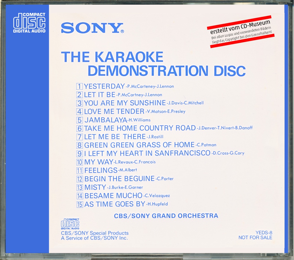 The Karaoke Demonstration Disc - Sony Grand Orchestra [YEDS-8 • JP • 1982 • Demo] |