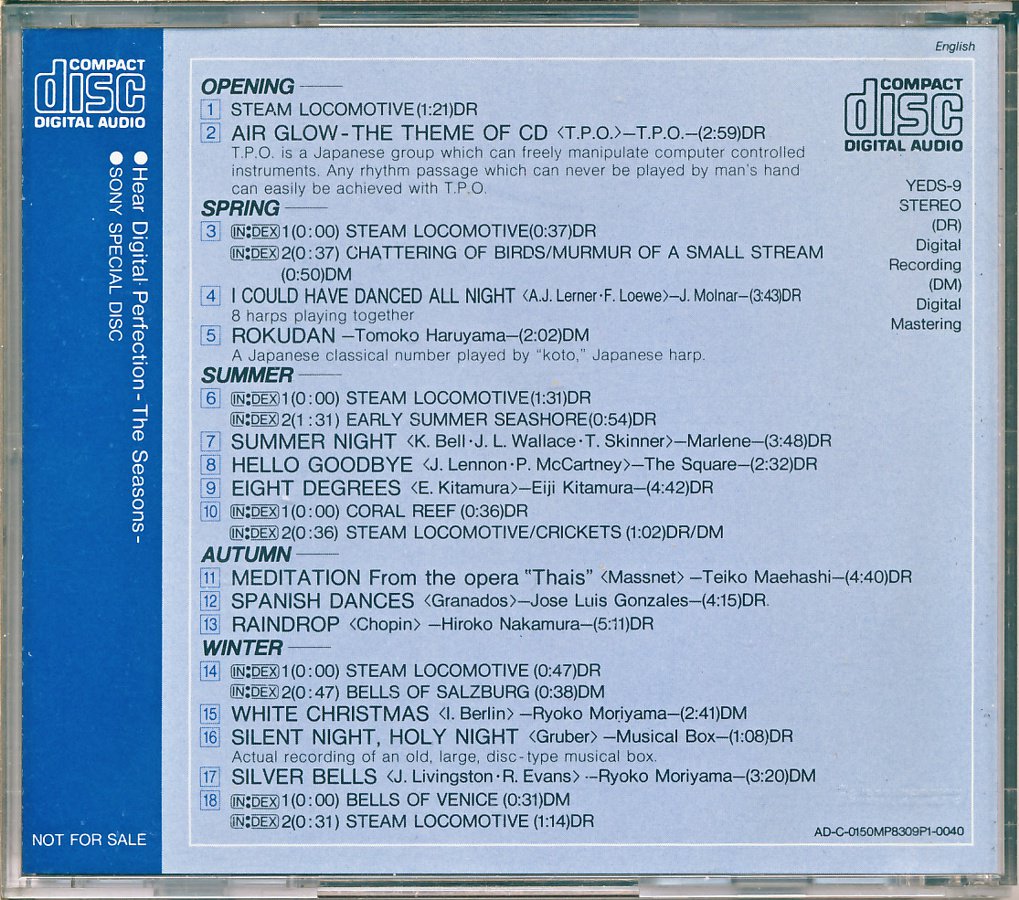 Sony CD Player Demonstration - Selected Music for CD Player [YEDS-27 • JP • 1986 • Demo] |