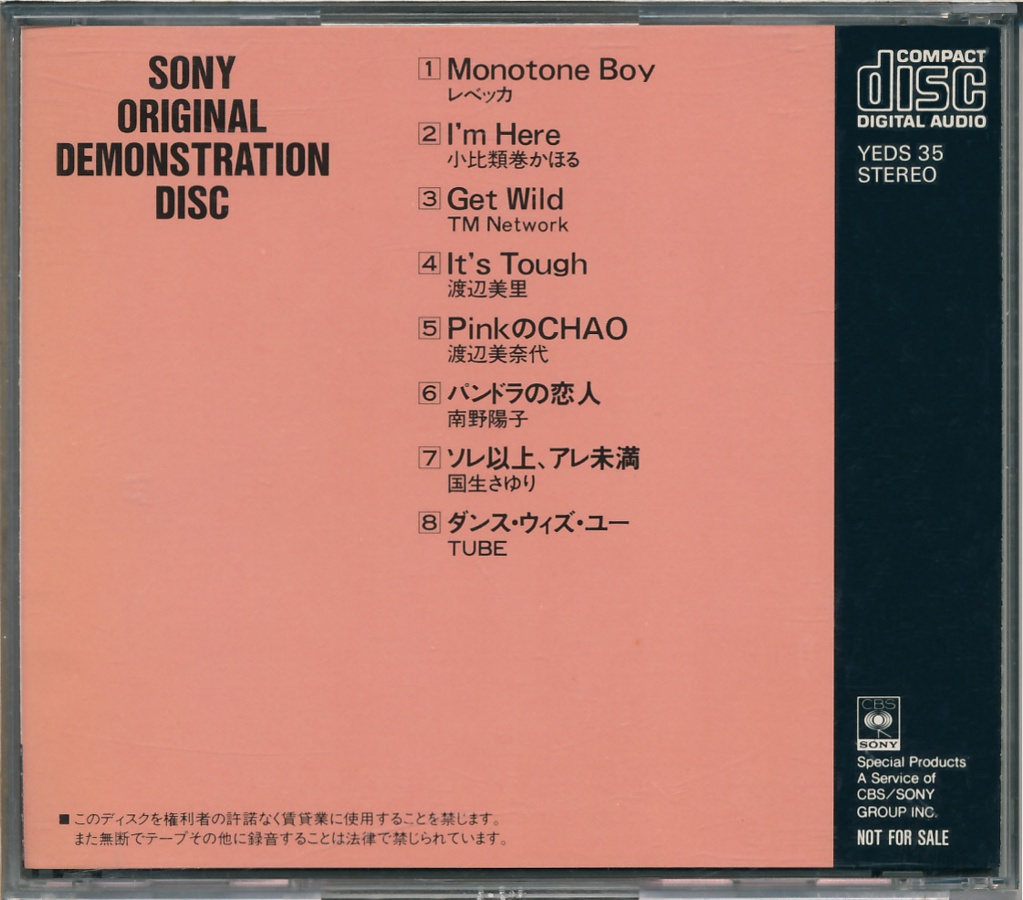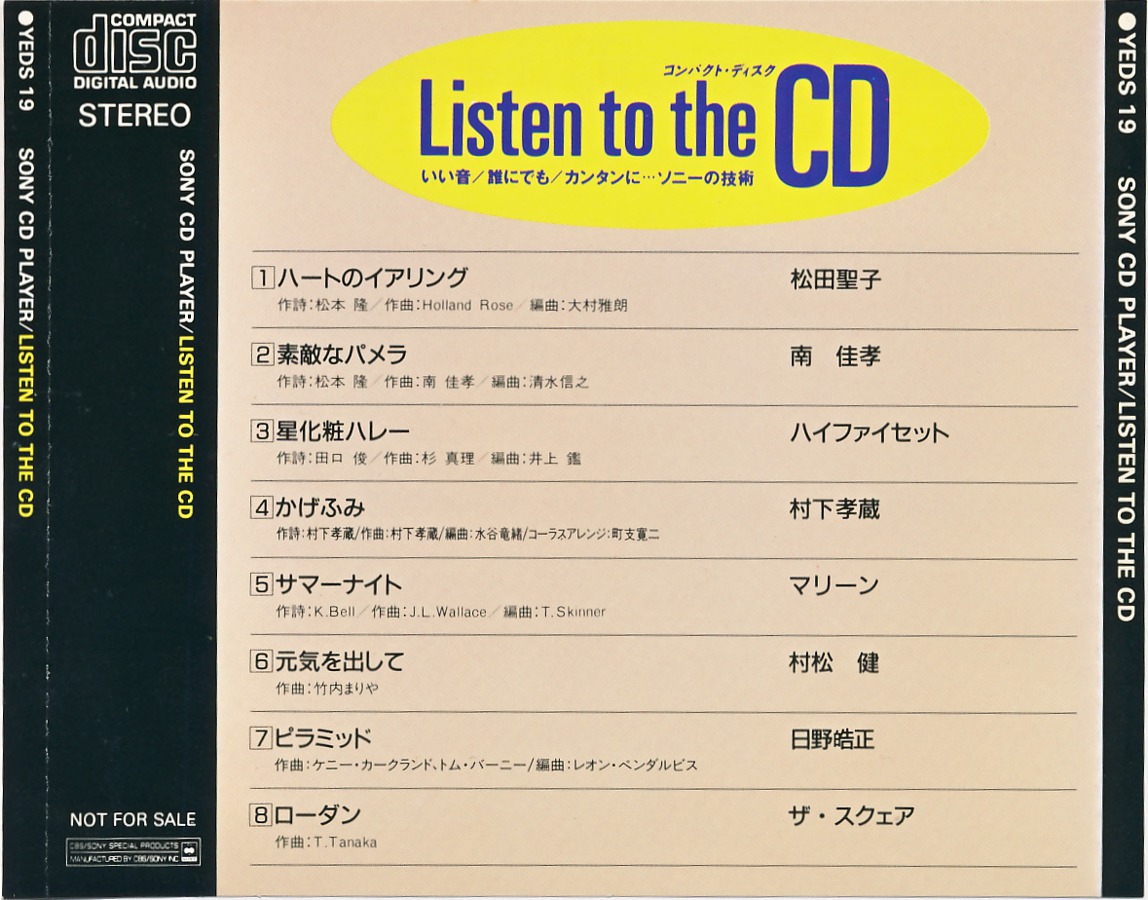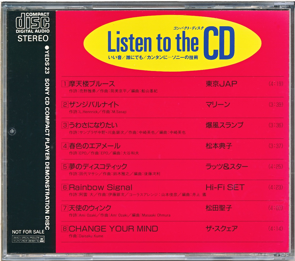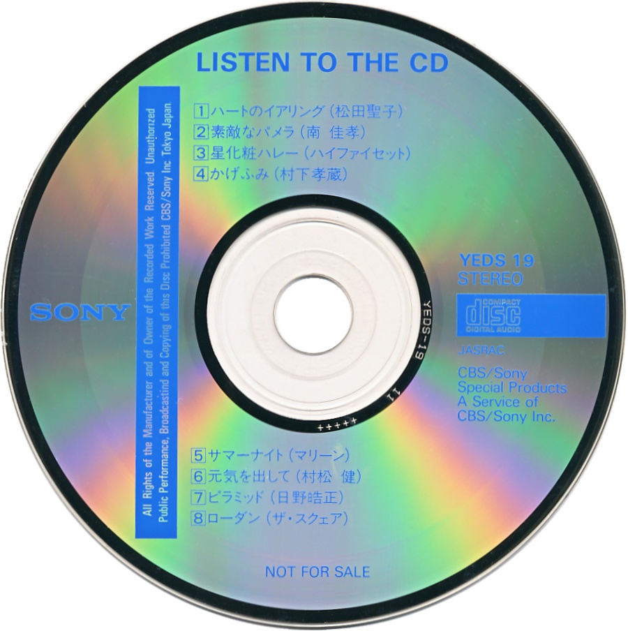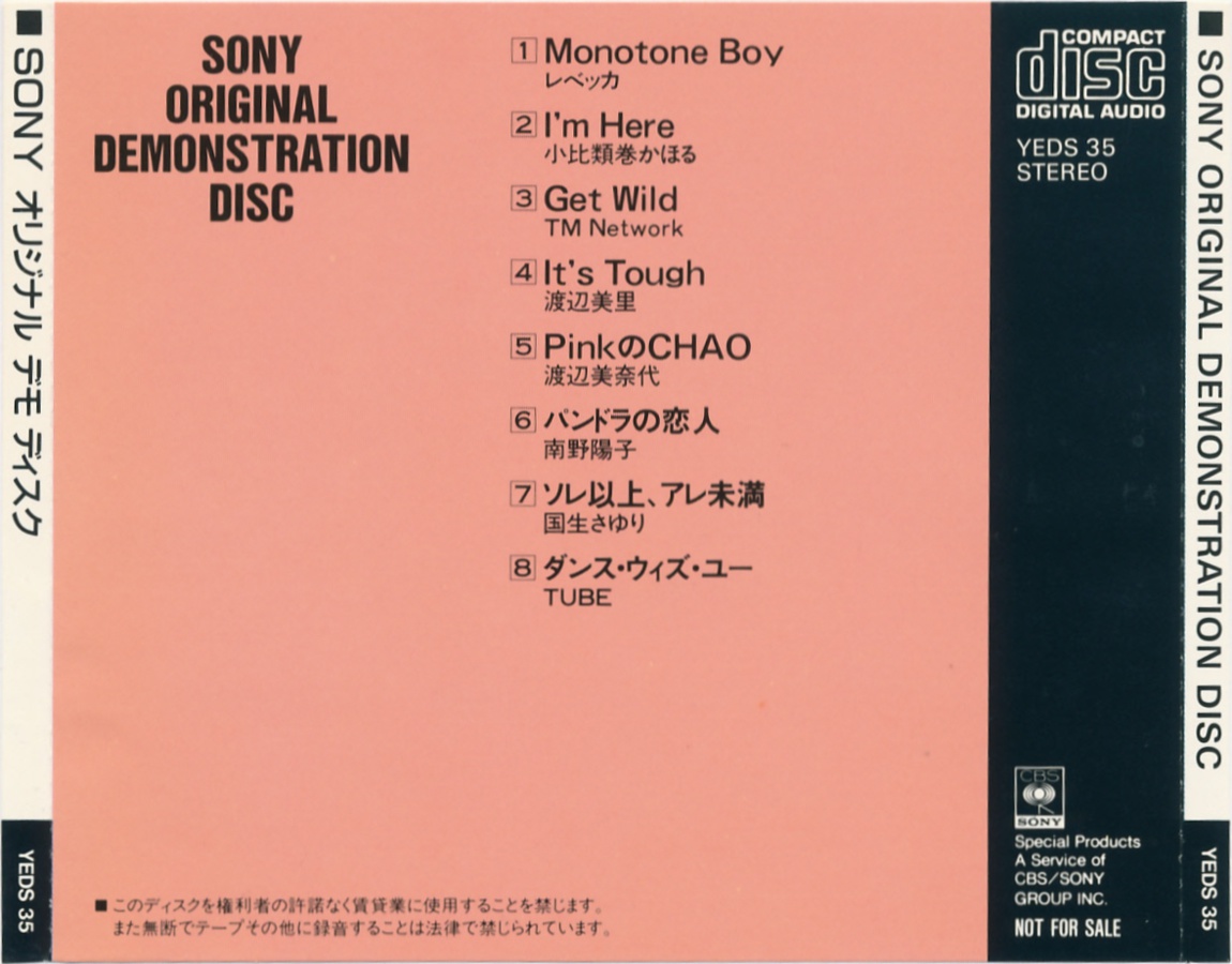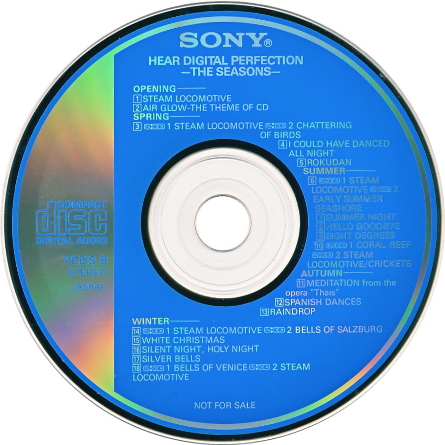 CD Demonstration Disc · YEDS-19 · Japan · © 1985 Sony Corporation / CBS-Sony Group Inc. CD Demonstration Disc · YEDS-19 · Japan · © 1985 Sony Corporation / CBS-Sony Group Inc. CD Demonstration Disc · YEDS-19 · Japan · © 1985 Sony Corporation / CBS-Sony Group Inc. CD Demonstration Disc · YEDS-19 · Japan · © 1985 Sony Corporation / CBS-Sony Group Inc. CD Demonstration Disc · YEDS-19 · Japan · © 1985 Sony Corporation / CBS-Sony Group Inc. CD Demonstration Disc · YEDS-19 · Japan · © 1985 Sony Corporation / CBS-Sony Group Inc. |