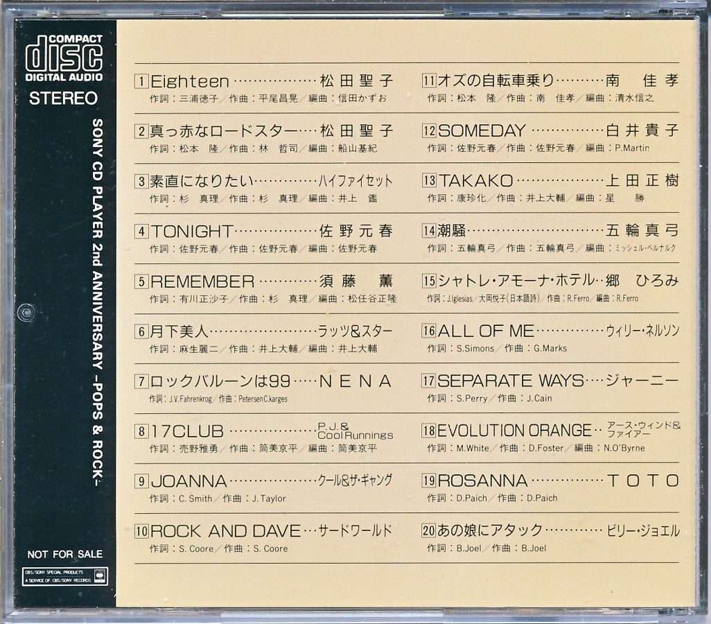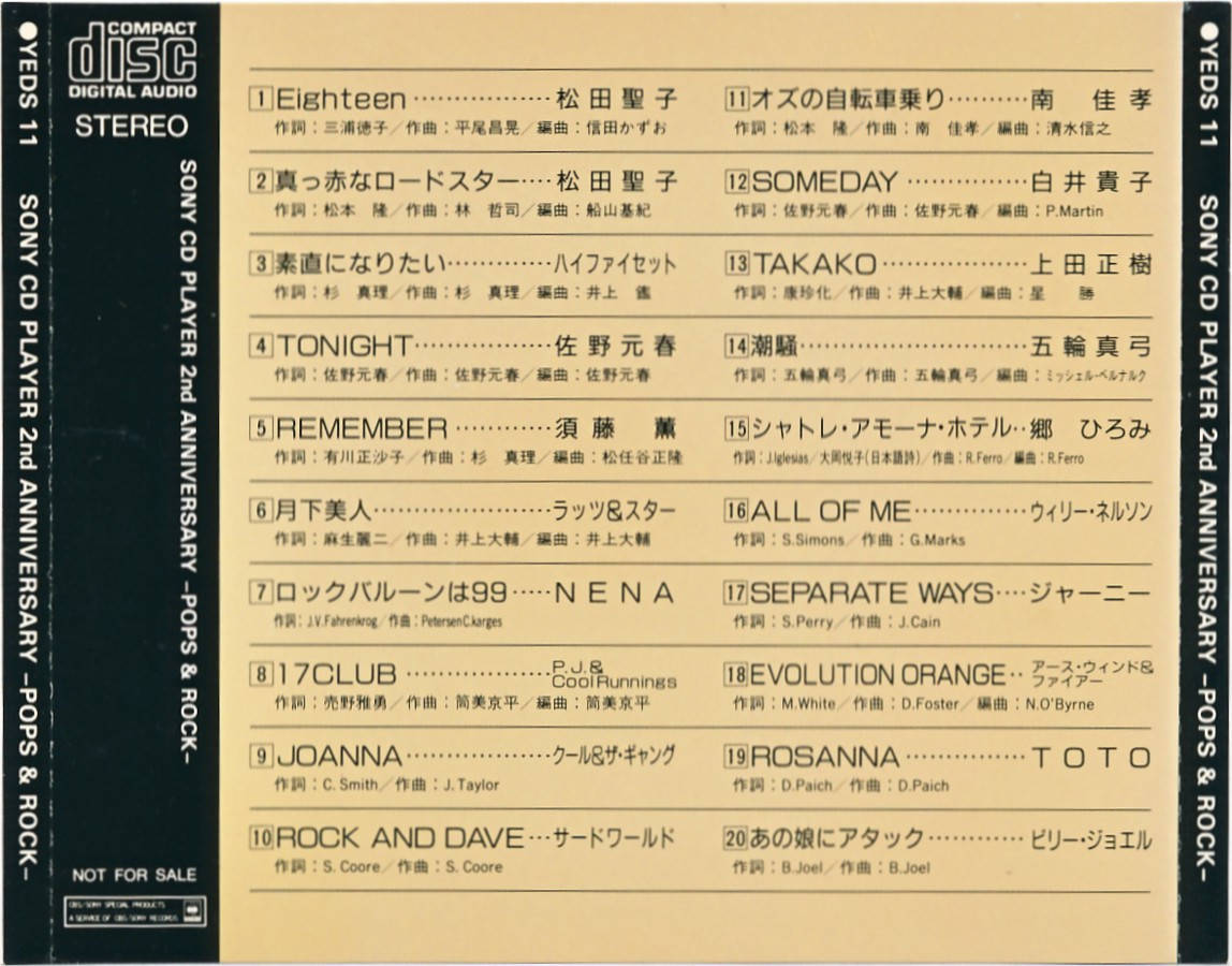 | Sony CD Player 2nd Anniversary - Pops & Rock [YEDS-11 • JP • 1984 • Demo] |