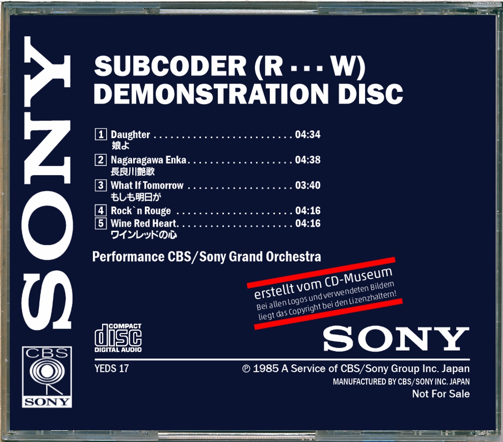 | Sony Subcooder (R · · · W) Demonstration Disc [YEDS-17 • JP • 1985 • Demo] |