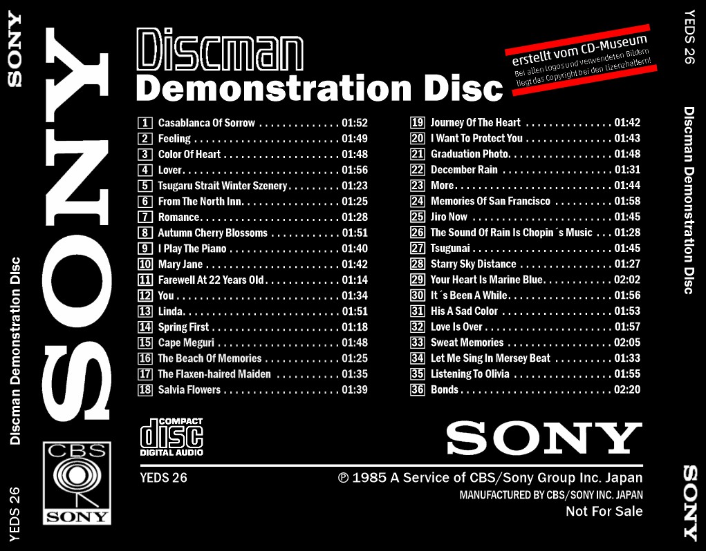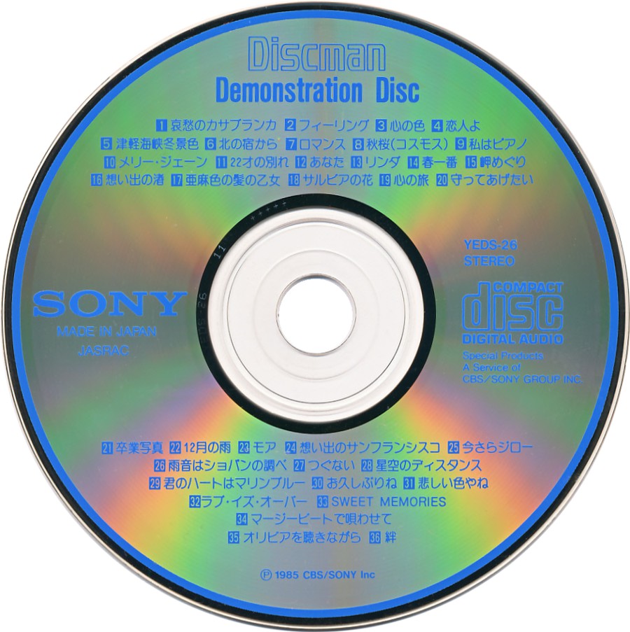 Sony Discman Demonstration Disc [YEDS-26 • JP • 1985 • Demo] |
