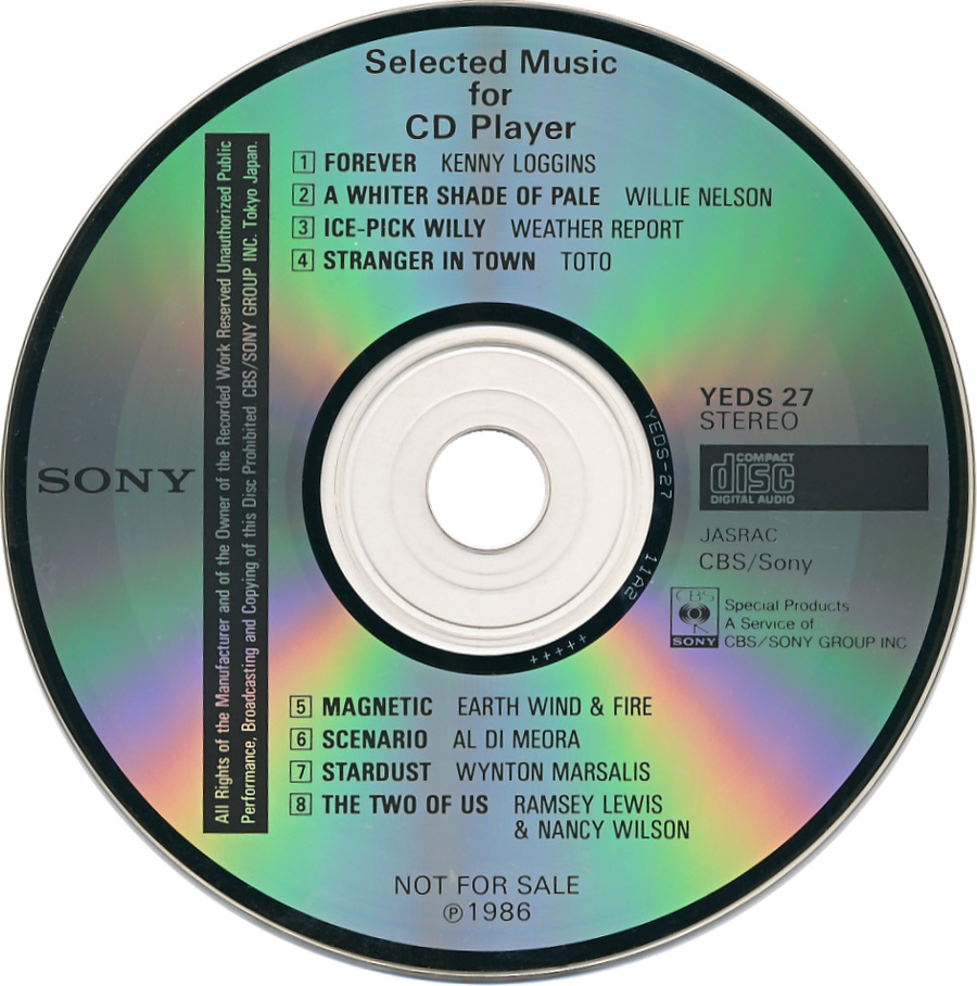 CD Demonstration Disc · YEDS-27 · Japan · © 1986 Sony Corporation / CBS-Sony Group Inc. CD Demonstration Disc · YEDS-27 · Japan · © 1986 Sony Corporation / CBS-Sony Group Inc. CD Demonstration Disc · YEDS-27 · Japan · © 1986 Sony Corporation / CBS-Sony Group Inc. CD Demonstration Disc · YEDS-27 · Japan · © 1986 Sony Corporation / CBS-Sony Group Inc. CD Demonstration Disc · YEDS-27 · Japan · © 1986 Sony Corporation / CBS-Sony Group Inc. CD Demonstration Disc · YEDS-27 · Japan · © 1986 Sony Corporation / CBS-Sony Group Inc. |