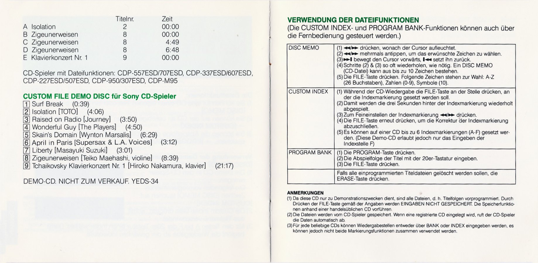 Demonstration zum Portable Player D-50 · YEDS-20 · Japan · © 1985 Sony Corporation / CBS-Sony Group Inc. Demonstration zum Portable Player D-50 · YEDS-20 · Japan · © 1985 Sony Corporation / CBS-Sony Group Inc. Demonstration zum Portable Player D-50 · YEDS-20 · Japan · © 1985 Sony Corporation / CBS-Sony Group Inc. Demonstration zum Portable Player D-50 · YEDS-20 · Japan · © 1985 Sony Corporation / CBS-Sony Group Inc. Demonstration zum Portable Player D-50 · YEDS-20 · Japan · © 1985 Sony Corporation / CBS-Sony Group Inc. Demonstration zum Portable Player D-50 · YEDS-20 · Japan · © 1985 Sony Corporation / CBS-Sony Group Inc. |