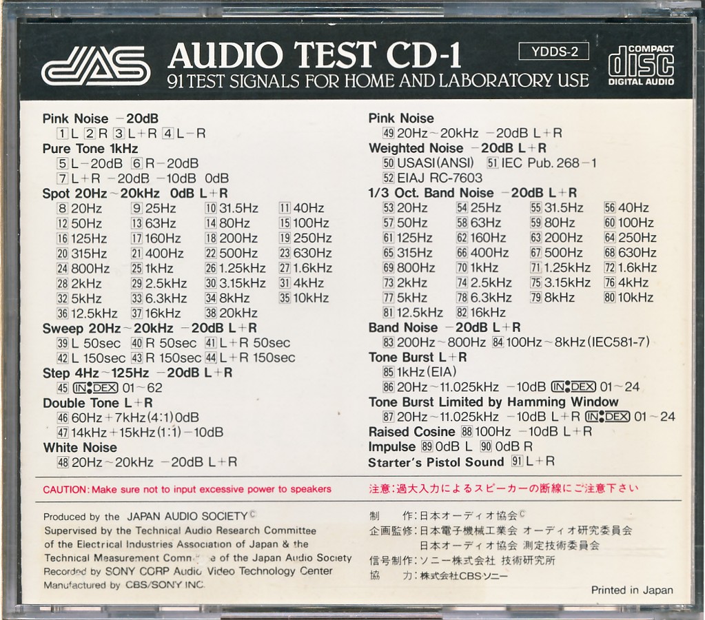 | Japan Audio Solution - Audio Test CD 1 (Sony für JAS) [YDDS-1 • JP • 1984 • Test-CD] |