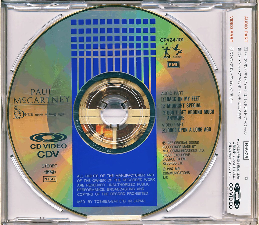 | Und außerdem, pdo in Blackburn (UK) war zwar als Presswerk der ganzen Generationen der CD-Video und LaserDisc weltweit von Philips und PolyGram vorgesehen, aber wie so oft ist die Welt in Japan anders. Dort wurde die Produktion aus logistischen Gründen von Partnern vorgenommen und so erfolgte dort der Marktstart nach der ursprünglichen Planung im Spätherbst des Jahres 1987 und mit dem dort geplanten Titelkatalog. |